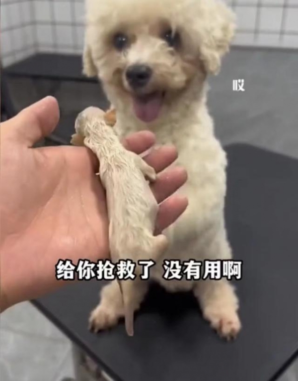 看上去它不仅不舍得这只狗宝宝,对于狗宝宝的去世它还感到非常悲伤,就连叫唤的声音听着都令人很不安。