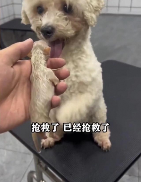 狗妈妈仿佛没有听懂一样,眼巴巴地盯着自己的孩子,前爪依然在不停地作揖,嘴巴里还发出尖锐的叫声。