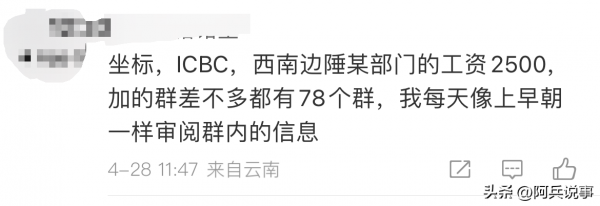 有银行工作的网友表示,自己在西南边陲,工资2500,却有几十个群,每天像上早朝-样审阅群内的信息。