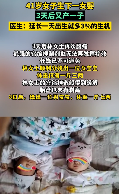 "在孕23周-26周期间内,只要多延长一天,新生儿就会多3%存活的可能!"3月20日,医生为林女士进行了紧急宫颈环扎术。