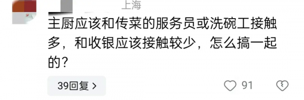 网友百思不得其解,主厨怎么跟收银员混在一起,难道不是应该和传菜服务员或洗碗工接触多吗?