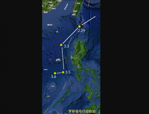 【"罗斯福"号2月29日到3月6日的行动轨迹,数据来源吉林一号】