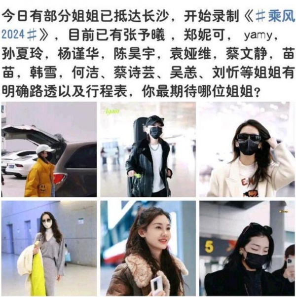 2月29日,来自五湖四海的姐姐们已经抵达长沙,目前被拍到的有张予曦、郑妮可、孙夏玲、杨谨华、袁娅维、蔡文静、苗苗、韩雪、何洁、蔡诗芸、吴恙、刘忻等。