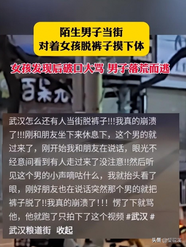而男子的这种行为要么就是心理变态,刚看完什么电影把持不住内心的欲望;然后通过在大街上对着女孩裸露下体来寻找刺激,这种人肯定不满足于此的,因为很多强j的犯人在事发之前都会有这种行为举措;