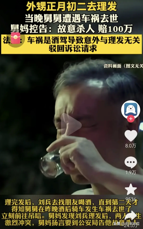 外甥正月初二理发,当晚舅舅遭车祸去世,舅妈控告:故意杀人赔100万