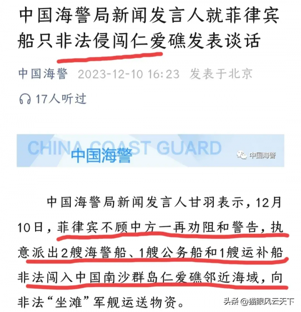 12月10日中国海警局发表的类似声明
