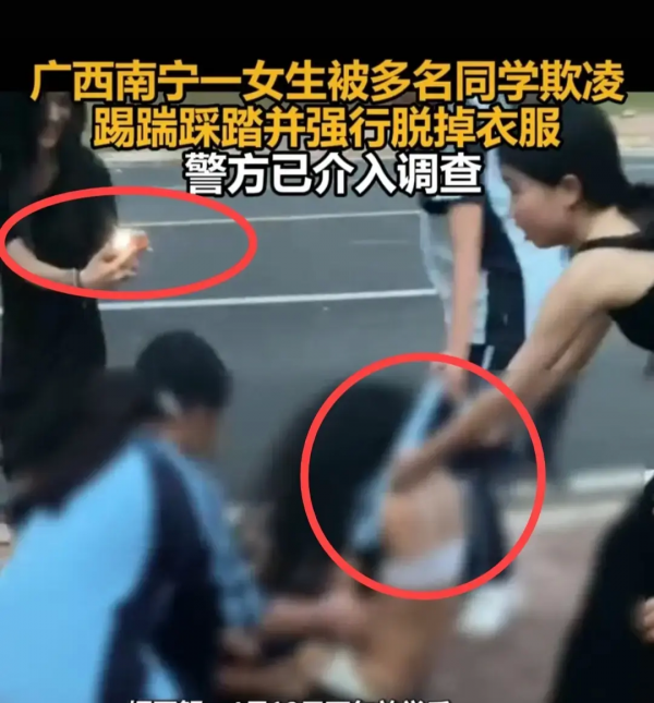 广西一女生被一群人强行脱衣,霸凌学生狂笑拍摄