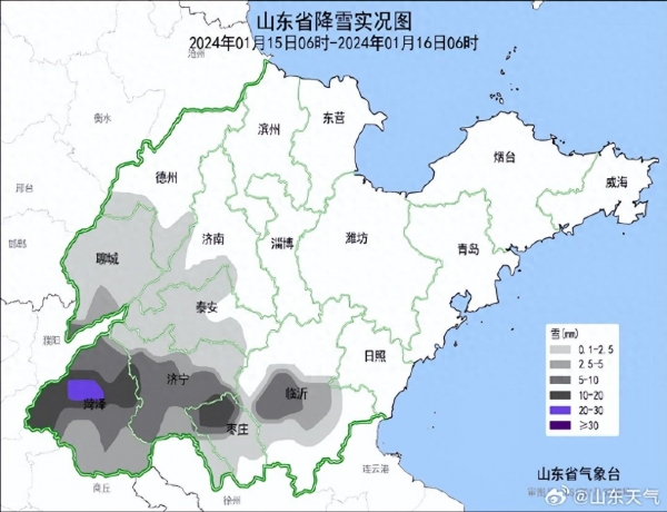 特别需要关注的是,16日夜间到17日夜间,菏泽、聊城、德州等地有雨夹雪或小雪,路面湿滑,积雪较为明显,可能对交通运输和城市运行造成一定不利影响。请大家注意交通安全,提前做好防寒准备。