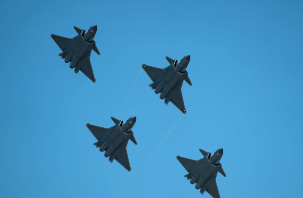 同时海报背景以佩洛西窜台事件为主线,标注的6块红色阴影区域,正是当时东部战区在台海海域划设6块实弹射击落弹,意味着解放军舰机"围岛"之势,而且歼-20战机,轰-6K轰炸机等空军力量,海军作战舰艇由东西南北四个方向"围岛"。歼-20战斗机在台岛北部,轰-6K轰炸机直接面前西太平洋,在台岛外海威慑。