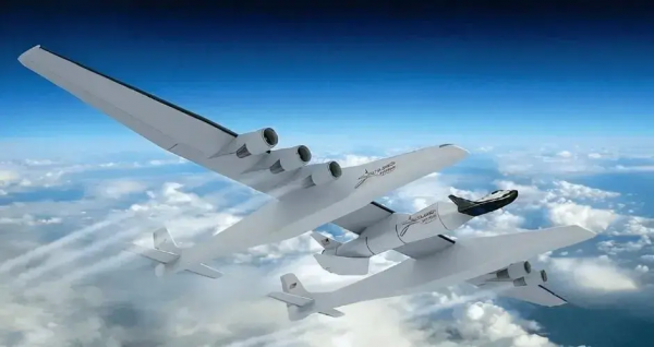 巨型双身飞机"平流层发射"(Stratolaunch),是世界首架巨型双身飞机,它能将火箭运送到3万英尺以上的高空发射,从而可以降低从地面直接发射火箭产生的高燃料成本。