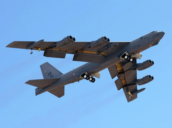波音B-52轰炸机,是美国一型八发动机远程战略轰炸机。B-52轰炸机用于替换B-36轰炸机执行战略轰炸任务,由美国波音公司(Boeing)研制,