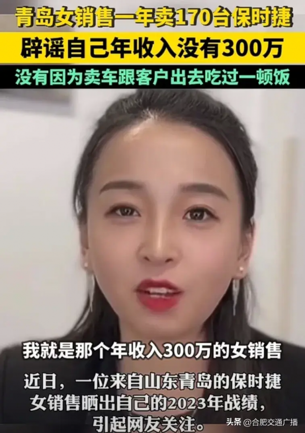 女销售一年卖170台保时捷,稳坐2023年青岛销冠宝座!该消息近日引起热议,相关词条火速登上热搜。