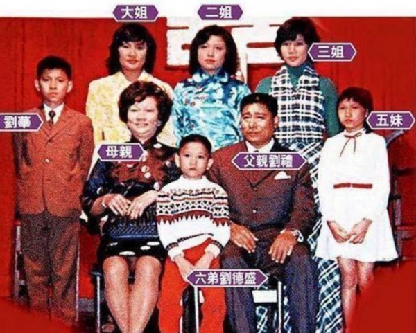 刘德华生于一个贫困的家庭,在家中排行老四,家中大姐为了减轻家庭负担,早早辍学养家,刘德华从小就对大姐很敬佩。