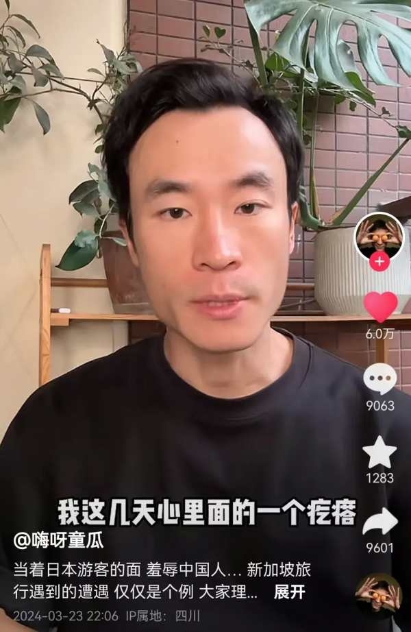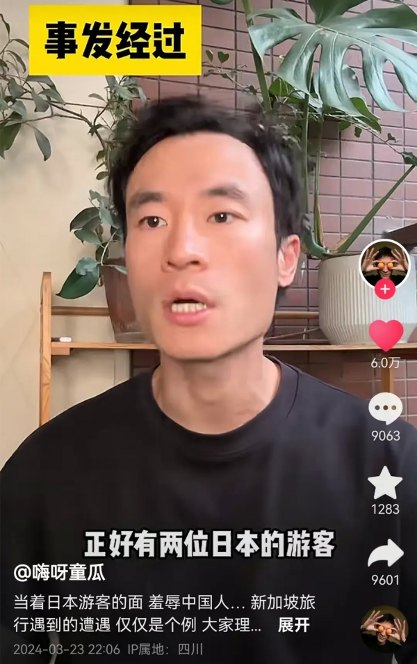 据了解,事发在新加坡一保护区内,国内知名旅游博主童瓜在保护游玩时,被当地一名工作人员当着日本游客的面做出羞辱的手势。