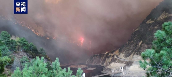 16日14时30分,火场突起大风,瞬时风力达8级以上,火场东线因大风引起复燃,并迅速向东北方向蔓延并越过多个山头。火势很大,浓烟遮蔽整个火场,无法抵近观察,火场内形势危险复杂,现场扑火人员紧急撤离至安全区域。