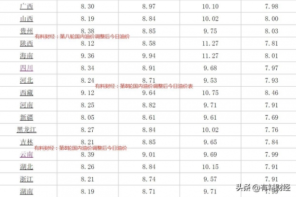 国内油价由接近每升10元大幅下调至6元时代,今年以来逐步回升到8元时代。