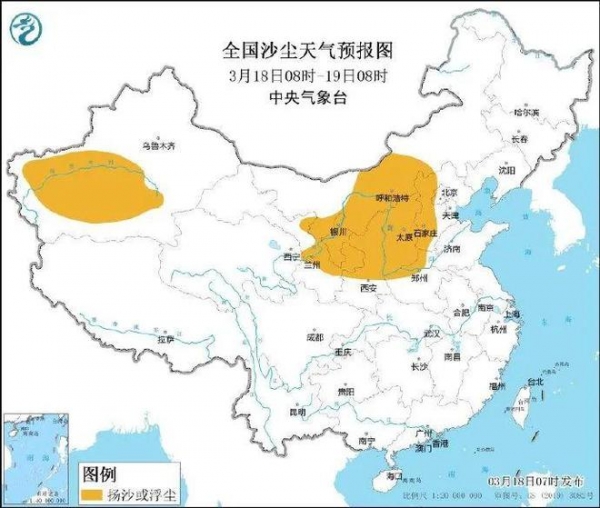 新一轮沙尘正自北向南袭来