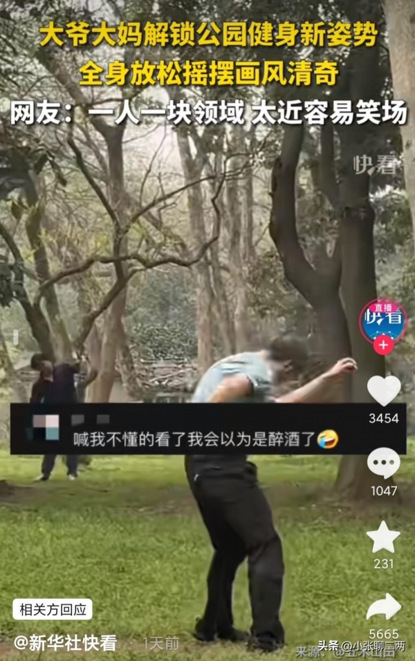 男子植物园遇大爷大妈锻炼:全身放松摇摆似"僵尸",画风很奇特