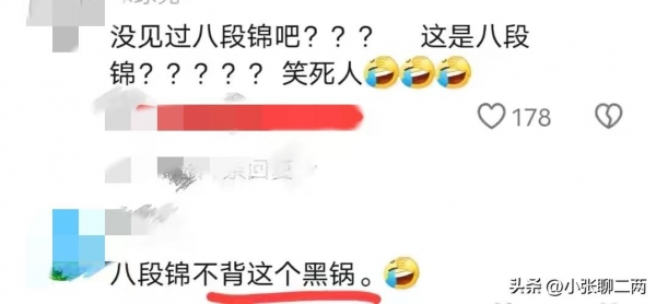 一开始有个网友评论,这是八段锦呀。紧接着就被许多网友教育了,这不是八段锦,这是抽筋!八段锦可不背这个锅!