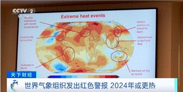 当地时间19日,世界气象组织发布的最新报告显示,2023年是有记录以来最热的一年,全球温室气体浓度、地表温度等多项气候变化指标创下新纪录。而2024年地球可能更热,为此,世界气象组织向全球发出红色警报。