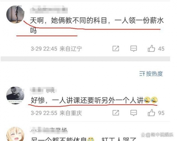 至于薪水问题,根据爆料,两人的教学工作是按课时计费的。