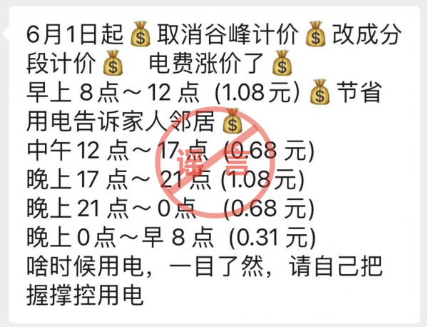 江苏省电力公司近期未收到政府价格主管部门电价调整文件,也未发布过上述电价调整信息,网传消息不实。