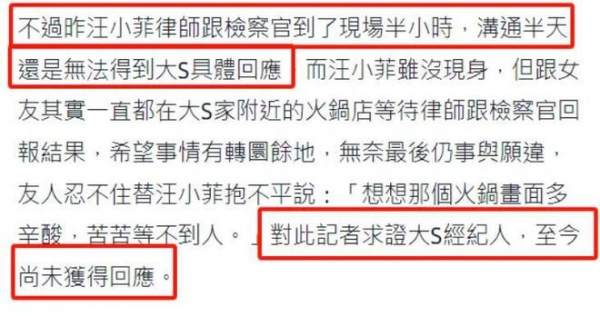 自从两个月前大S出席小S公公的丧礼,引起大家热议之后,她就没有再公开露面过,就连检方和汪小菲的律师去她家楼下送诉讼文件,她都躲避不露面,不仅如此,还直接报警把人轰走,解释说是不想在庭外和他们有额外联系,但她也不出庭,正常的庭上联系也没有,全靠律师传话。