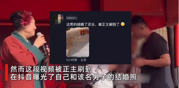 然而,就在视频走红后,该男子远在海外的妻子从朋友那里得知丈夫竟然在舞台上相亲,当晚在网络平台现身并晒出结婚证,表示该男子已经结婚。该"已婚男"事件,给王婆说媒带来了不好的影响。