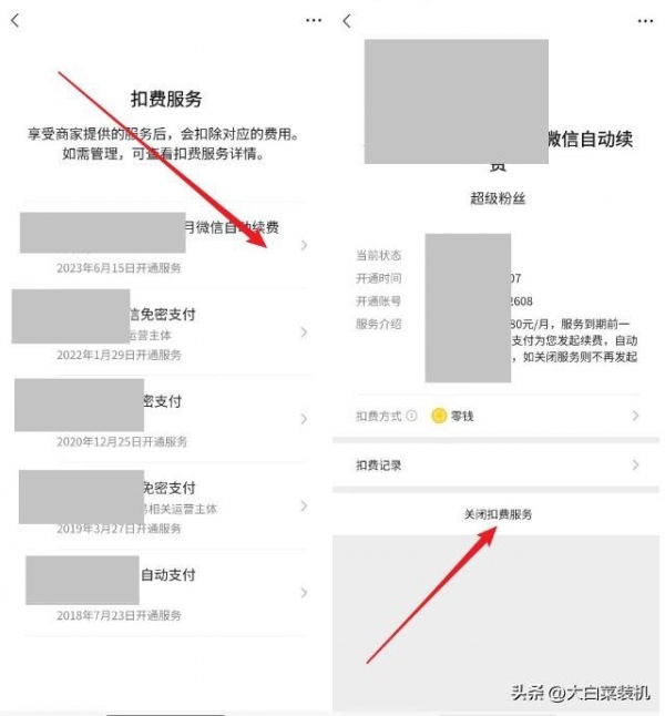 最后,你就能看到微信所签约的所有可以免密支付的服务,根据你的情况,点击进入并【关闭扣费服务】即可。