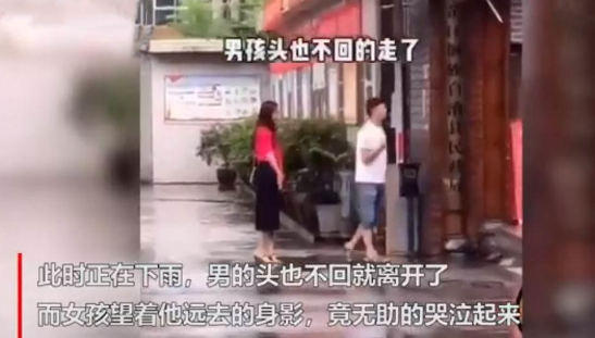 没走几步她蹲在地上默默抽泣,她刚办完离婚手续,天气又不怎么好,她的心情必然非常沮丧,她看上去很可怜。