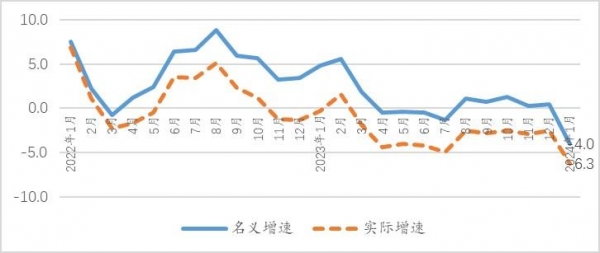 2024年3月8日,日本央行公布了2024年1月份日本2人及以上家庭的名义收入同比增长0.3%,实际收入同比下降2.1%,而实际收入从2022年10月份以来同比一直是下降的。从消费支出来看,2024年1月份2人及以上家庭的名义支出下降4.0%,实际支出下降6.3%。图3显示,2023年4月份以来,日本2人及以上家庭的消费支出是比较疲软的,这与疲软的家庭收入增长相一致。