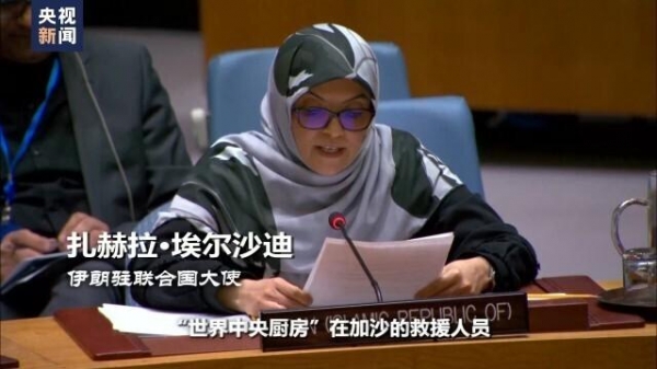 伊朗驻联合国大使 扎赫拉·埃尔沙迪:就在今天,这个政权(以色列)杀害了"世界中央厨房"在加沙的救援人员,正如联合国副秘书长所强调的那样,他们是"在为饥饿的人们提供食物时牺牲的英雄"。