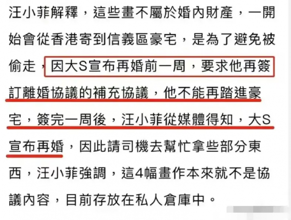 另外,大S还要求禁止汪小菲以后踏入豪宅半步,之后汪小菲派司机前往取回属于自己的四幅字画,还被大S给告了,网友表示汪小菲真是冤大头,自己买的豪宅拱手让给别人做婚房了。