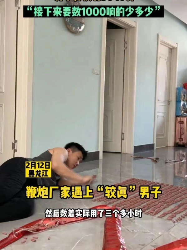 鞭炮厂遇到"狠人",男子买10000响鞭炮数完发现仅有3641响