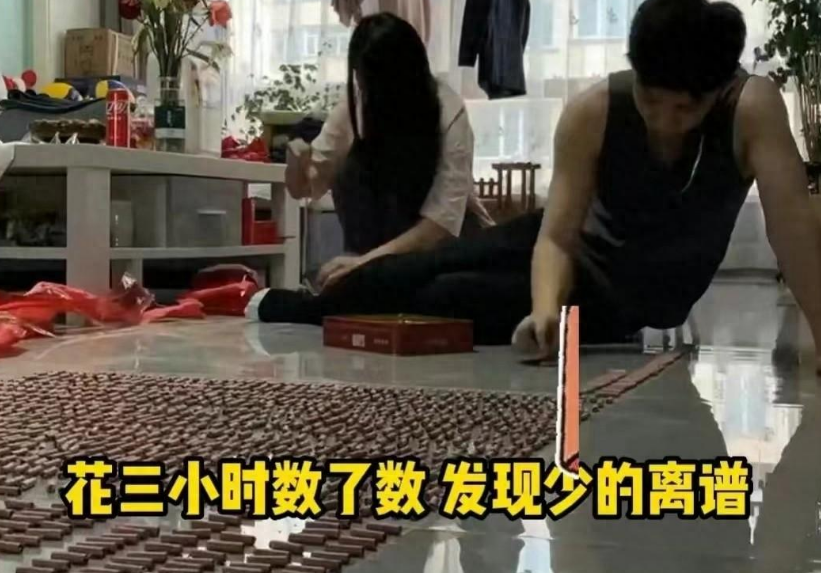 东北小伙怀疑数量不足,买10000响的鞭炮回家拆开数,花了3个小时,把小鞭炮排满房间,数过之后才知道,里面只有3641个,缩水了三分之二。