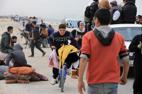 2月13日,在加沙地带南部城市拉法,遭以色列军队袭击影响的人们逃离家园。新华社发(亚西尔·库迪摄)