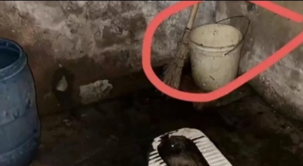 画面里,能清晰地看出一个刚出生的婴儿在厕所旁边的垃圾桶里被发现。