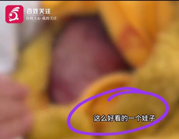 之后好心人把孩子裹在毛毯中,画外音还在感慨这是一个非常好看的一个娃娃,不知道怎么就被遗弃了。