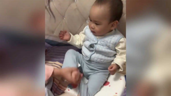 有网友说:小家伙模仿的比姐姐的表情还像真的!