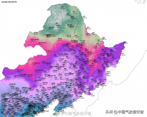极涡分队昨天潜入大兴安岭,当地-30度以下的极寒天气随即全面启动。今早图里河国家站降至-44.4度,是当地仅次于12月中旬寒潮的今冬第三低温,内蒙古黑龙江两省自动站最低气温也都低于-45度。今明两天极涡残余由西向东掠过东北,哈尔滨将在今天-28.5度的基础上试探-30度,而吉林辽宁将成为暴雪飘落的主战场。