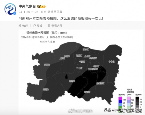 这么来看的话,河南省的雨雪天气至少持续到2月6日前后,雨雪日数长达7天左右。这是因为南支槽和副热带高压的位置和强度都比较稳定,导致雨雪天气的持续性和稳定性都比较强。比如河南郑州,本次降雪预报图上的预测降雪量非常大,中央气象台都表示"这么离谱的预报图头一次见"。