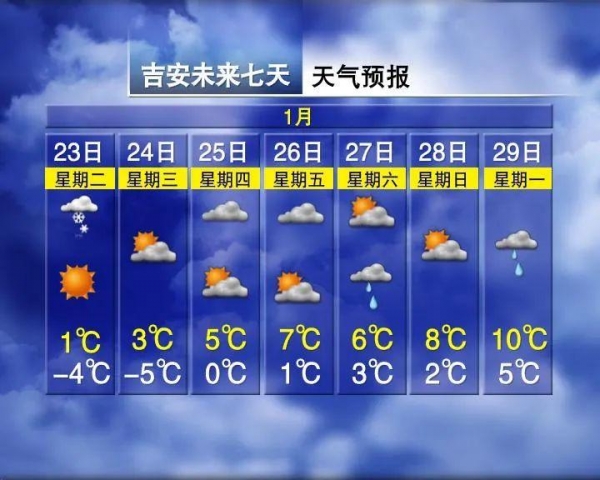 今天全省多云转晴,明天全省晴到多云,早晨局部地区有雾,25-26日全省为阴冷天气。