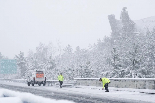 雪天路滑,大家出门一定要小心谨慎,驾车出行要谨记,"降速、控距、亮尾"。