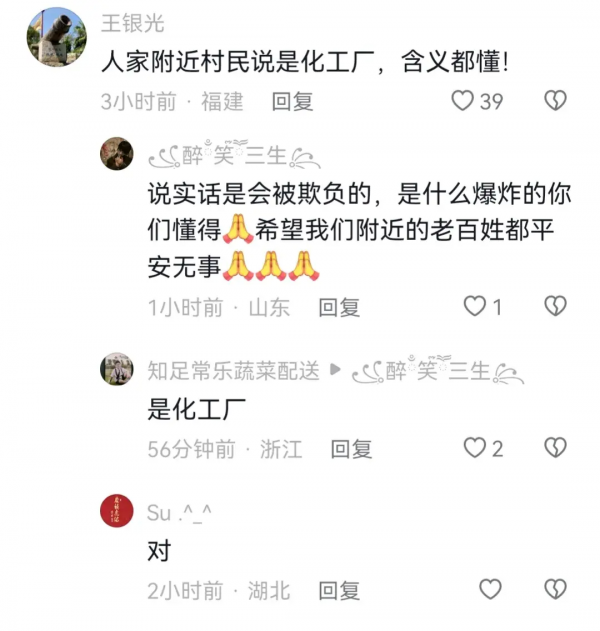 随着舆论在网上迅速传播,有些自称本地网友说出了疑似实情问题,那就是根本不是粮仓爆炸,而是马路对面的化工厂爆炸,但是不知道记者都说是废弃仓库爆炸。
