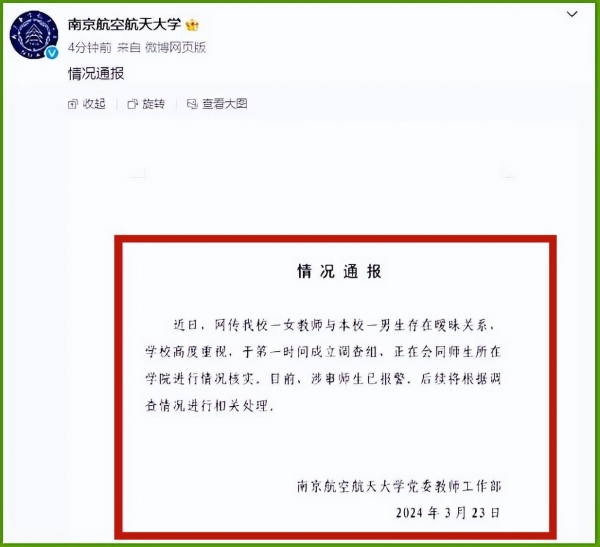 南航表示学校已经在调查此事,后续将根据调查结果做相应的处理。