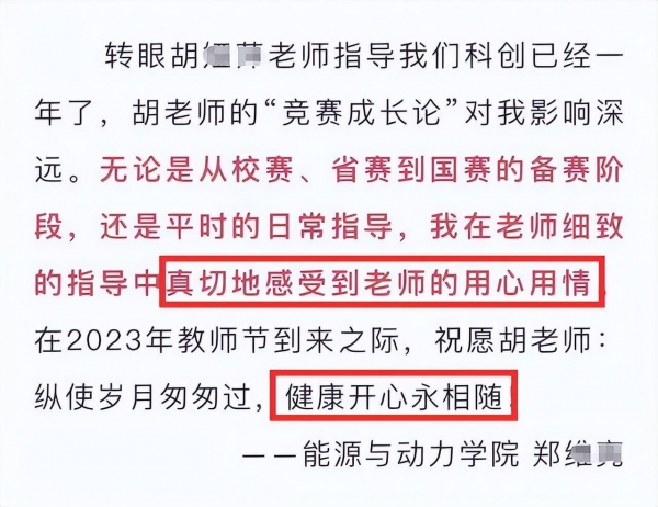 神通广大的网友还扒出了去年教师节郑同学对胡教授的感谢语。