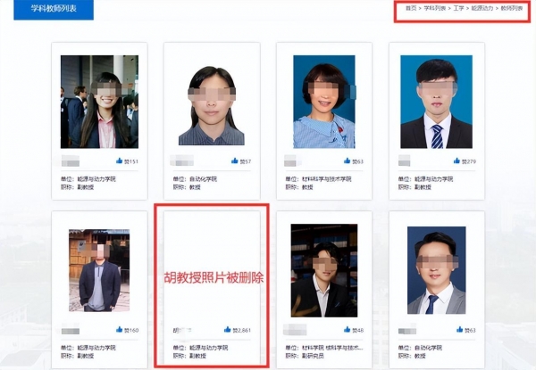 南航已经在学校官网下架了胡教授的照片。