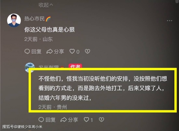 女子却表示,不怪自己的父母,是自己不听话。