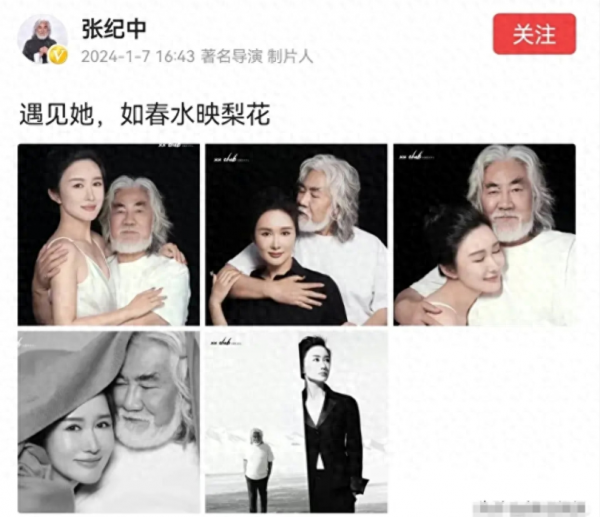 72岁导演张纪中突然表白小31岁妻子 拍照姿势惹争议