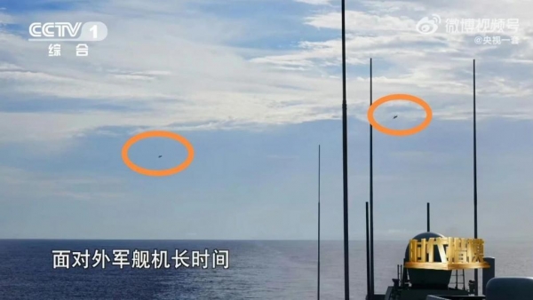 美军舰载战斗机在发现了前出的"南昌"号后,也出动了不少飞机对其进行拦阻,从央视公布的视频中可以看到,有多架美军F/A-18E/F超级大黄蜂战斗机低空掠过"南昌"号的上空,报道称,还有美军战斗机在几公里外对准"南昌"号做俯冲攻击姿态,试图以此来驱赶"南昌"号,但是"南昌"号不畏强敌,关键时刻,一方面正面迎了上去,另一方面又打开了导弹垂发系统的顶盖,亮出了"海红旗-9"重型远程防空导弹,并锁定来袭的战斗机。最终美军不得不偃旗息鼓,灰溜溜的撤离对抗海域。